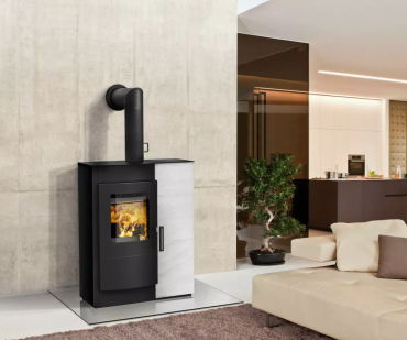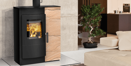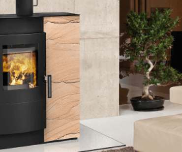 Habillage latéral : pierre ollaire, quartz anthracite, grès cappuccino, pierre blanche