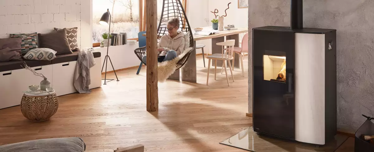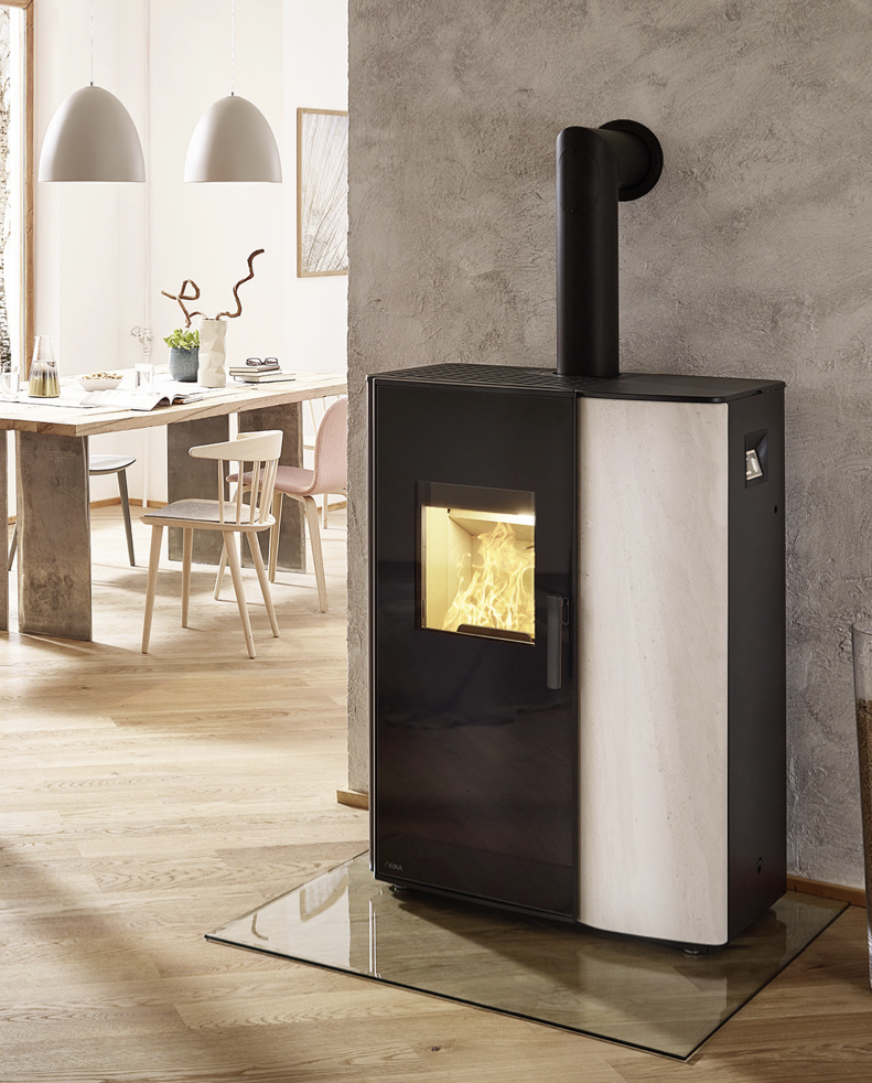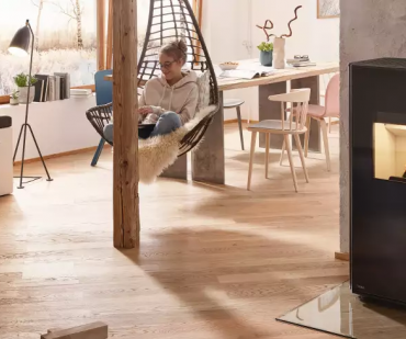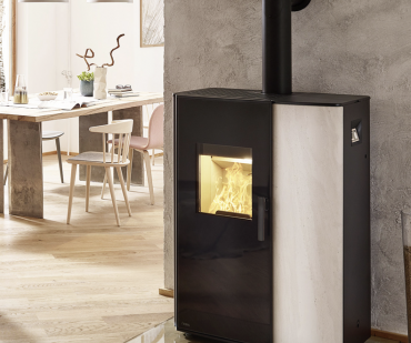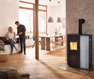Très esthétique allie les avantages d'un poêle-cheminée et ceux d'un poêle à pellets.
