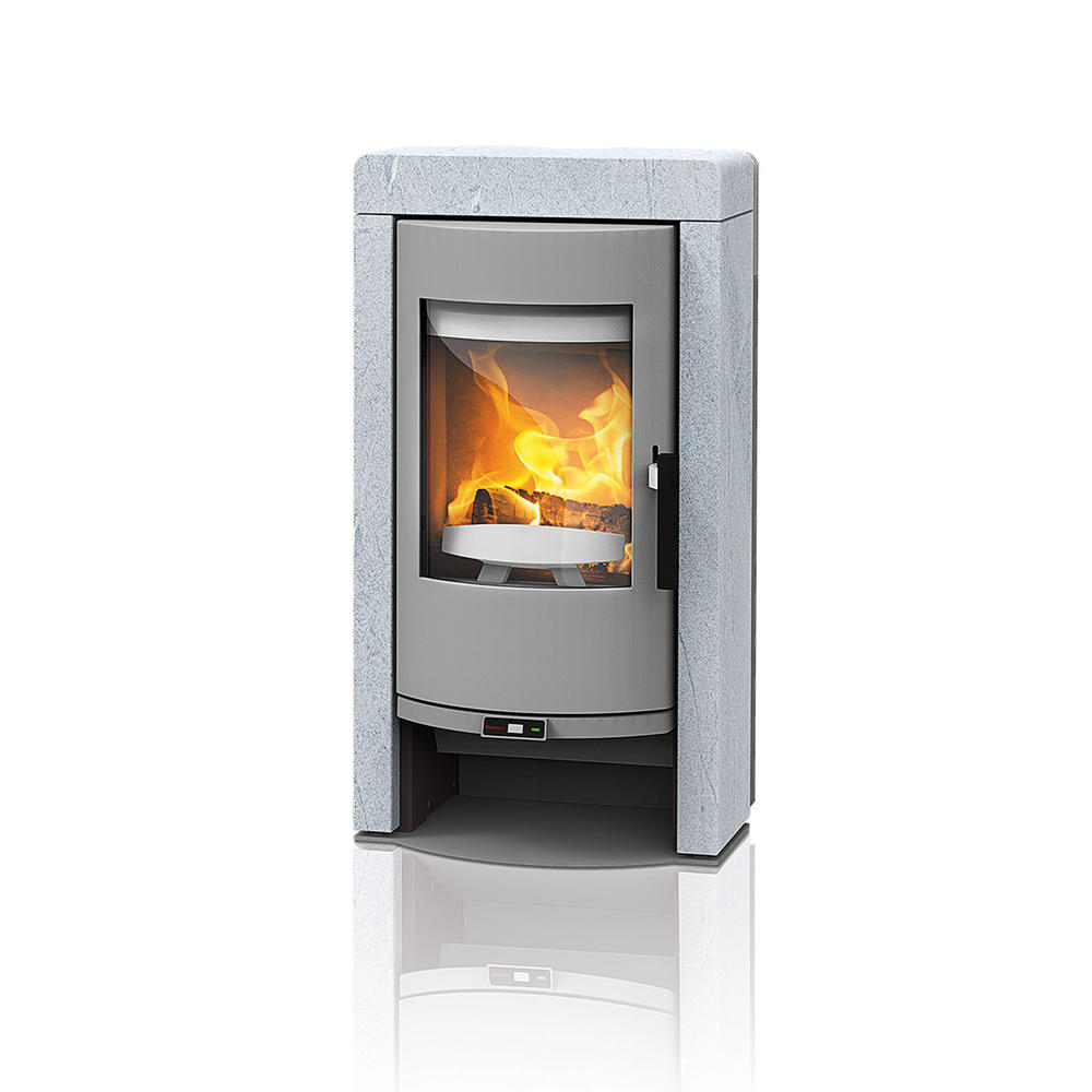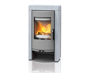 Classique et pourtant si unique, FOX II avec son noble corps en acier et son revêtement en pierre. Sa particularité, est son système manuel de régulation de l'apport en air, cela permet le réglage et la lecture à hauteur confortable.